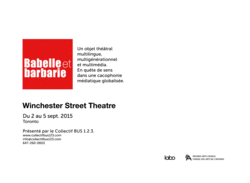 Collectif BUS 1.2.3. présente Babelle et Barbarie Au Winchester St. Theatre du 2 au 5 septembre 2015